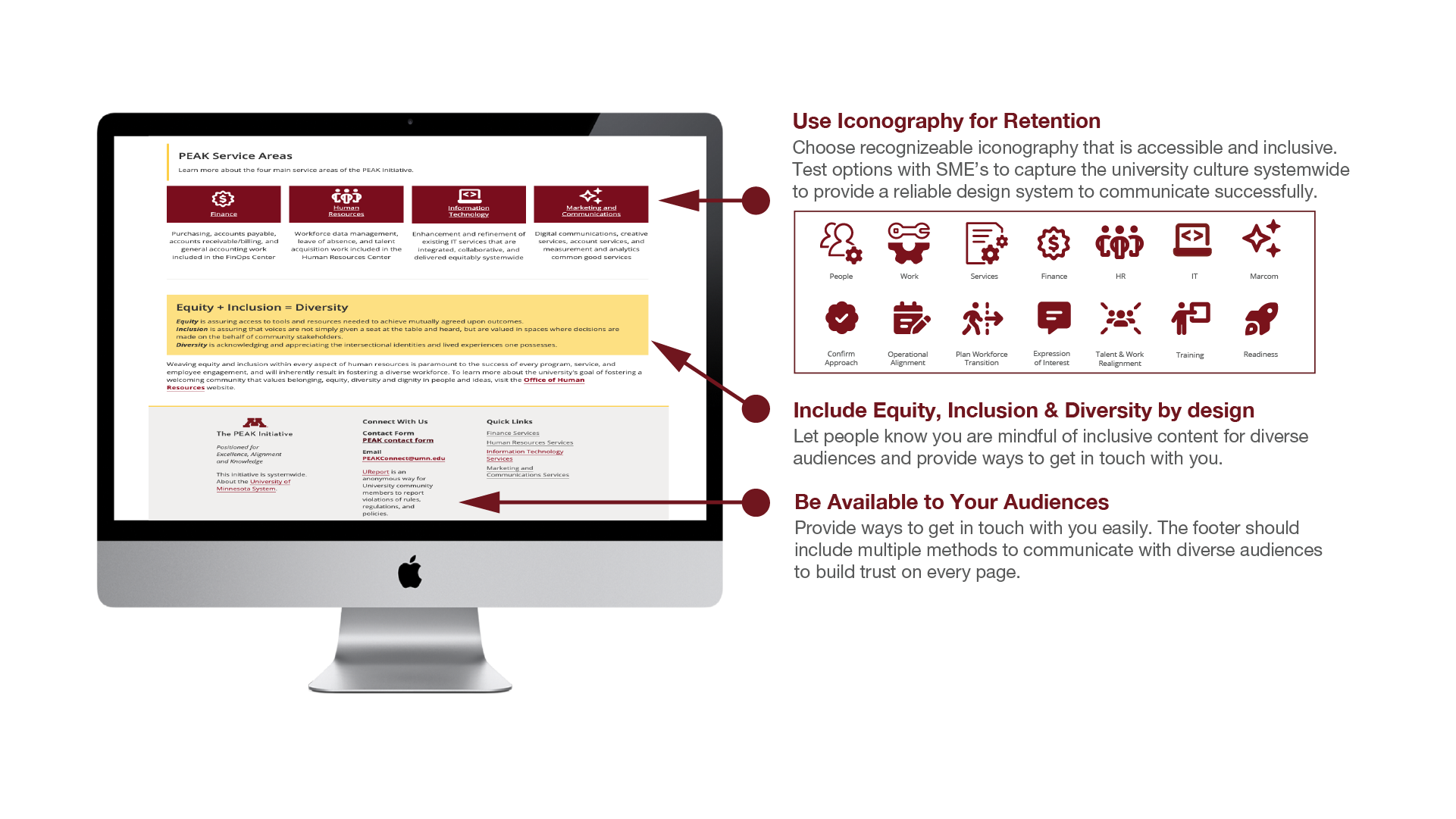 Use simplicity, authenticity and empathy as core content considerations to help improve trust, understanding and adoption systemwide of the PEAK Initiative service model changes through multimedia communications distributed across the university systemwide.